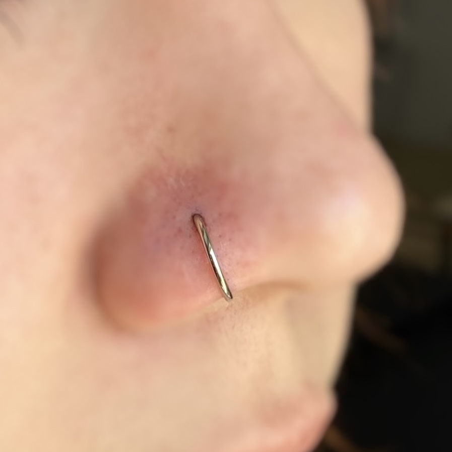 Perforo únicamente con aguja especialmente para el body piercing, nueva, estéril y desechable, como todo el material para realizar el procedimiento.